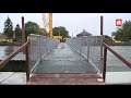 Pontonbrug gearriveerd bij hefbrug in Boskoop